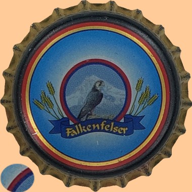 | Bayern Bräu, Bad Neustadt | Falkenfelser | Logo Falke Felsen Gerste Banner | goldener Rand | ![]() |